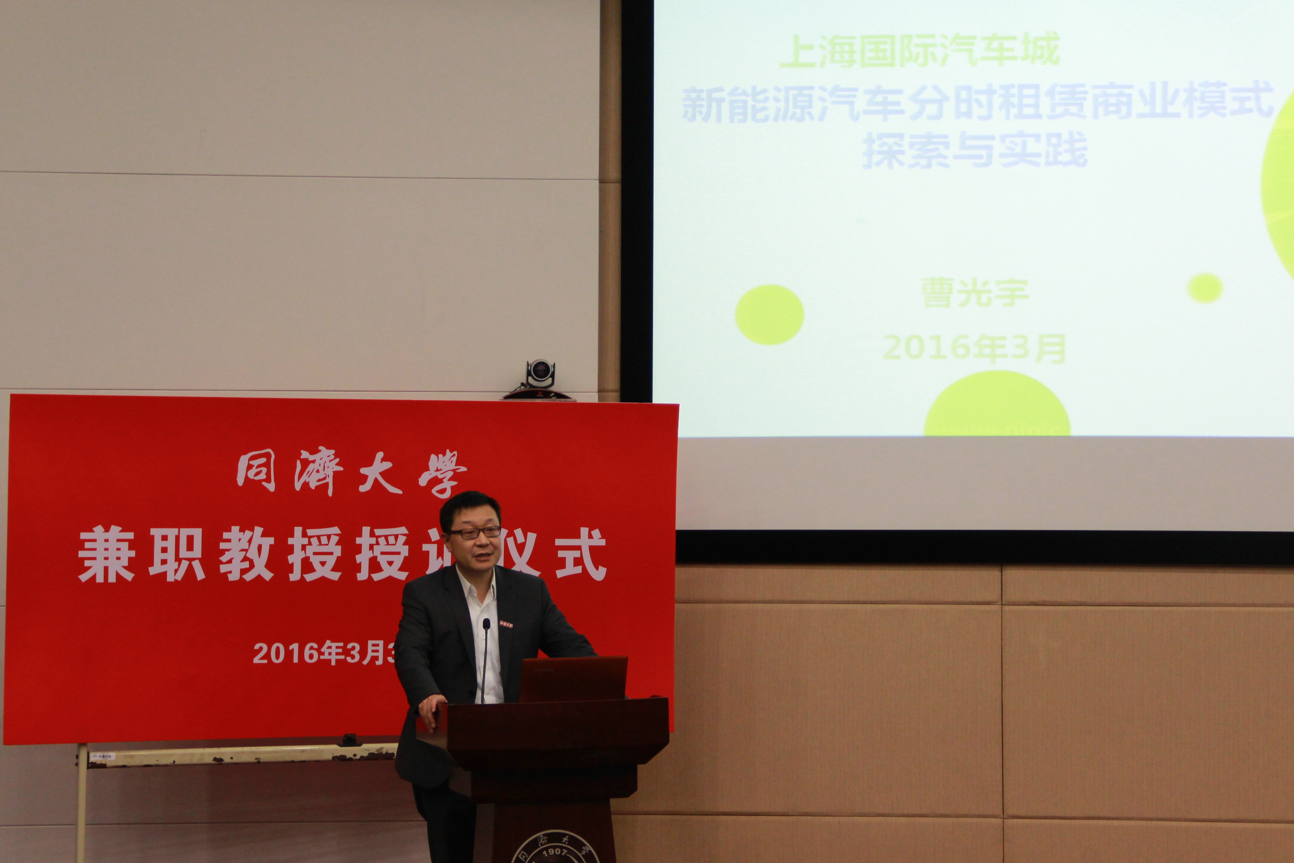 3月31日,曹光宇博士兼职教授受聘仪式在嘉定校区举行。校党委副书记方守恩为上海国际汽车城(集团)有限公司副总经理曹光宇博士颁发p站