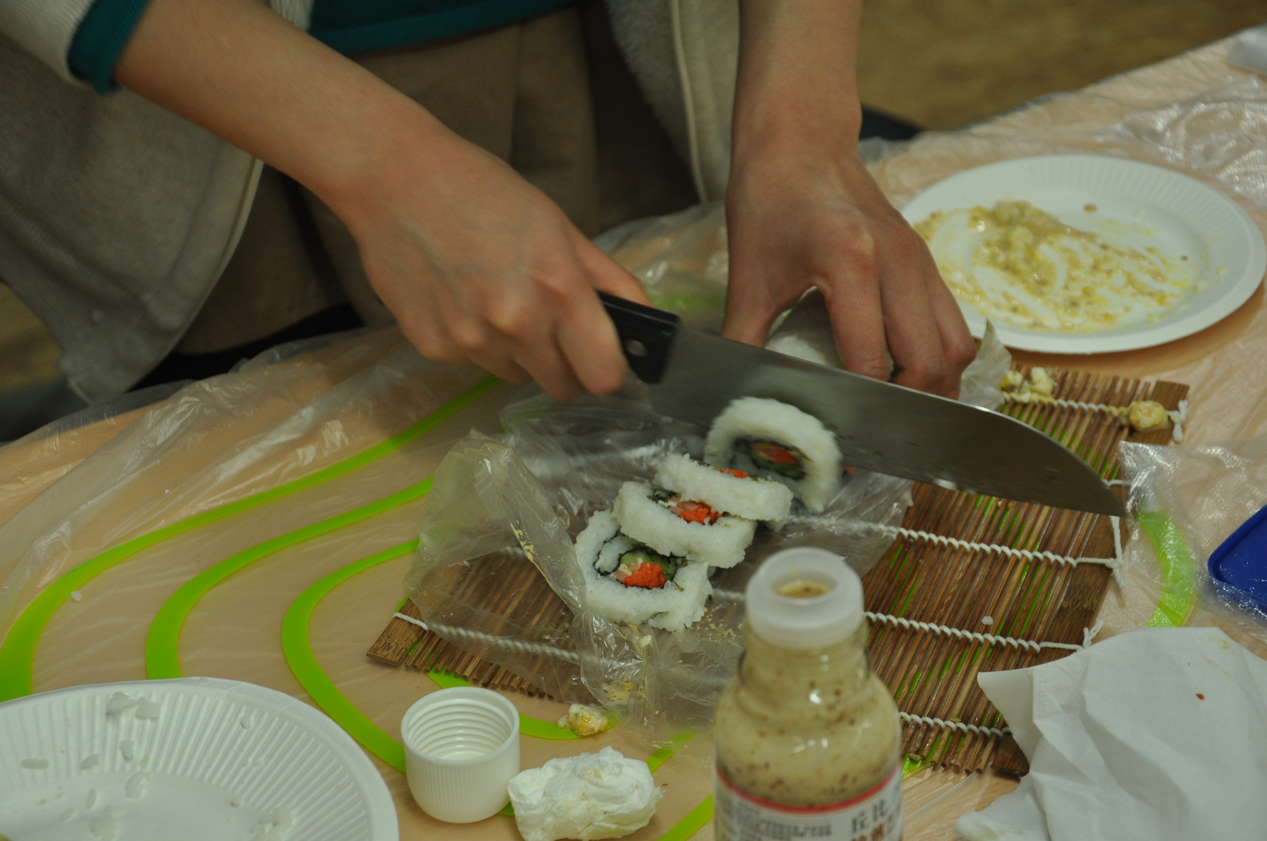 A311正式开始,一边是激情四溢的棋牌桌,一边是放满食材的料理区,纸牌与桌面摩擦的声音,刀具与食材摩擦的声音,与在场所有同学的欢声笑语融合在一起。女生们分组进行寿司和水果拼盘的制作,大家都展现出了自己卓越的料理技巧和精湛的刀法,令围观的同学在赞叹不已的同时又大饱口福。也有不少男生上前展露一下自己的厨艺,或者尝试一下寿司的制作,女生们都热心地前去帮忙。棋牌大赛结束后,参赛者纷纷前来品尝女生们做的寿司和水果拼盘,好评连连。不知不觉中,女生节闭幕联谊会就在其乐融融的氛围中结束了,同时也宣告了“未闻花名”p站