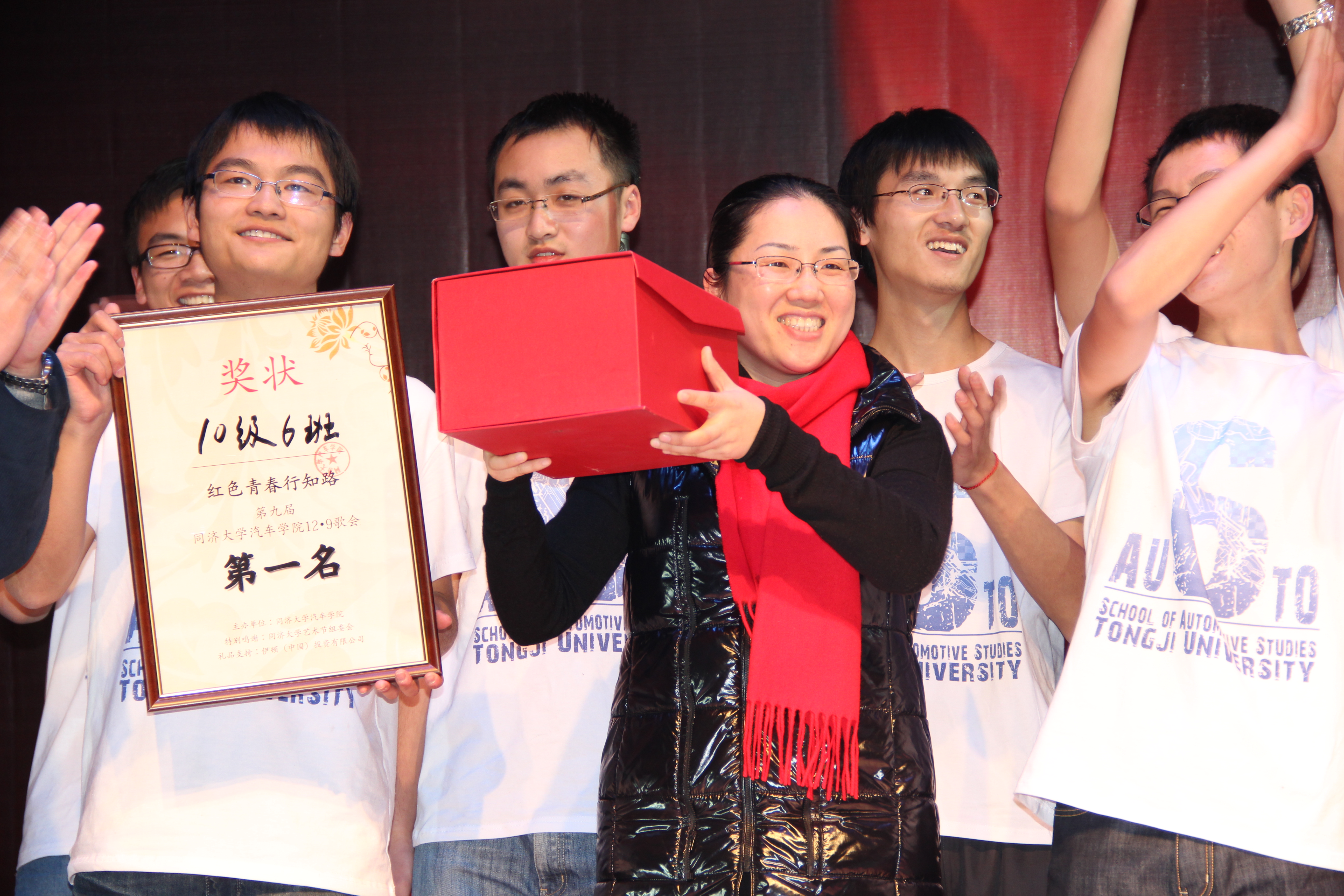 一二·九歌会的冠军由本科10级6班同学夺得。此次的歌会不仅是一场音乐盛宴,更是一次汽车人特殊的“红色”教育,丰富了嘉定校区校园文化,提升了同学们的爱国热情,激励了同学们的为中国汽车行业建设献身。