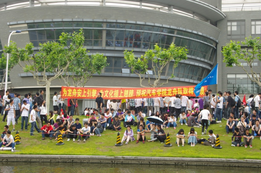 决赛中,汽院龙舟队和国防生作为去年的冠亚军再次相遇,整个过程两支队伍齐头并进,由于身体素质上的短板,最终遗憾的以0.5秒的差距屈居亚军。
