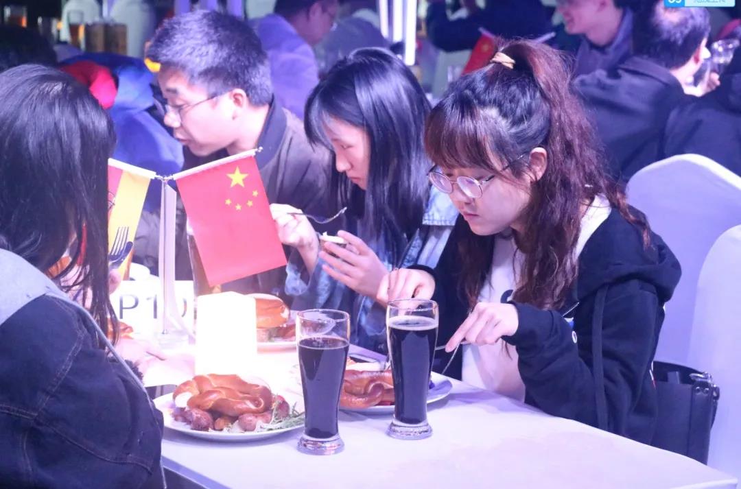 院长张立军举杯中拉开帷幕。本次的花园啤酒夜,除了德国啤酒、猪肘等美食,更有学生乐队现场Live,吉他、手风琴等演奏,同时,还创新融入中国元素,通过中国传统乐器演绎世界音乐等多种方式,让师生能更好地体验世界文化,提高民族认同感和对传统文化的认知,实现文化自信。