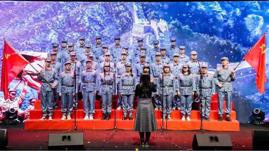 教师合唱团、各年级同学共13支队伍放声高歌,抒发赤诚的爱国之情和不忘革命初心,勇担时代使命的坚定信念。