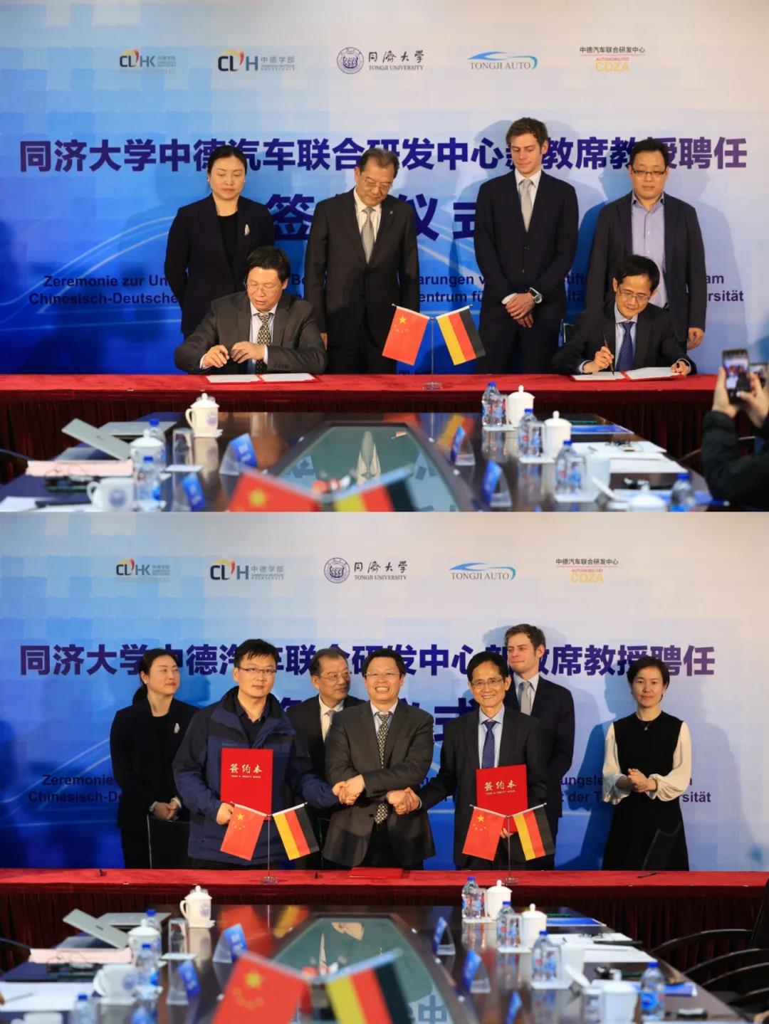 随后,中德汽车联合研发中心由雷星晖、孔瑞超、曹静、张立军和吴志红共同启动。同时,举行了中心2个新教席教授聘任签约仪式,分别为莱茵金属新型动力系统教席、保时捷汽车控制与网联自动驾驶教席,中方责任教授分别为张立军和陈虹(高炳钊代)。雷星晖、孔瑞超、曹静以及企业代表共同见证了p站