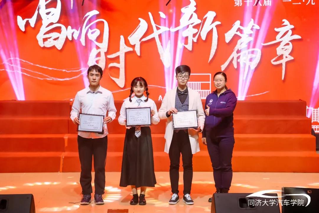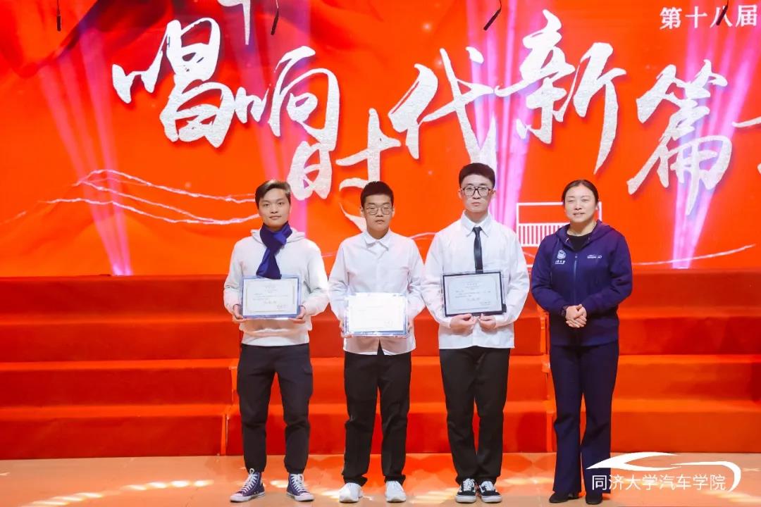 教师合唱团与观众合唱的《同济之歌》的歌声中圆满落下帷幕。最终本科2018级获得一等奖,本科2019级1班、本科2019级2班获得二等奖,研究生2021级能源动力班、2021级博士班、研究生2021级汽车电子班获得三等奖。本科2019级3班、本科2019级4班、研究生2021级汽车工程班获得优胜奖。研究生2021级中德班获最佳舞台奖,本科2019级5班获得最佳视频奖,本科2020级获最佳风采奖。