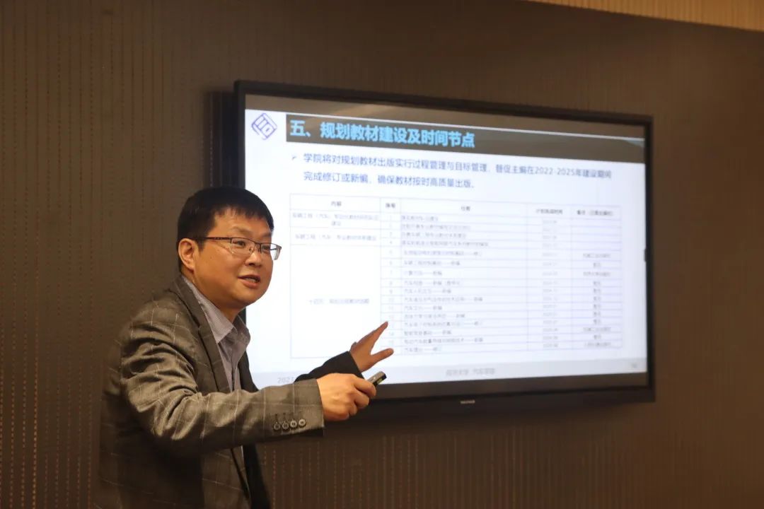 随后赵治国副院长从学院“十四五”教材建设目标、“十四五”重点建设任务、学院教材研究及编写队伍建设等方面介绍了p站