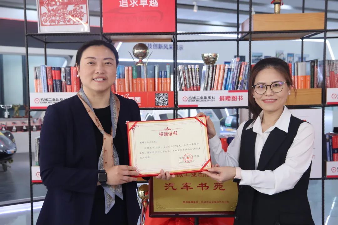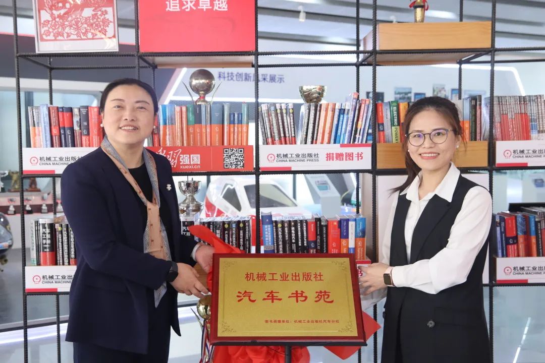 党委书记曹静和机械工业出版社汽车分社赵海青社长为机械工业出版社“汽车书苑”揭牌。机械工业出版社汽车分社向p站