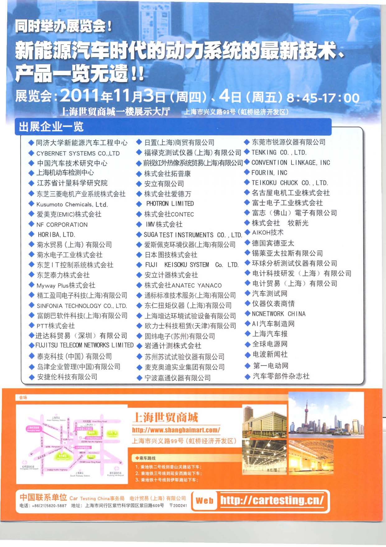 新能源汽车工程中心与Car Testing/Designing/Electronics China 2011执行委员会联合主办的《新能源汽车时代的动力系统研讨会及产品展》将于11月3日至4日在上海世贸商城举行,涉及试验、设计及电子等诸多领域,内容充实丰富,详见附件图片。