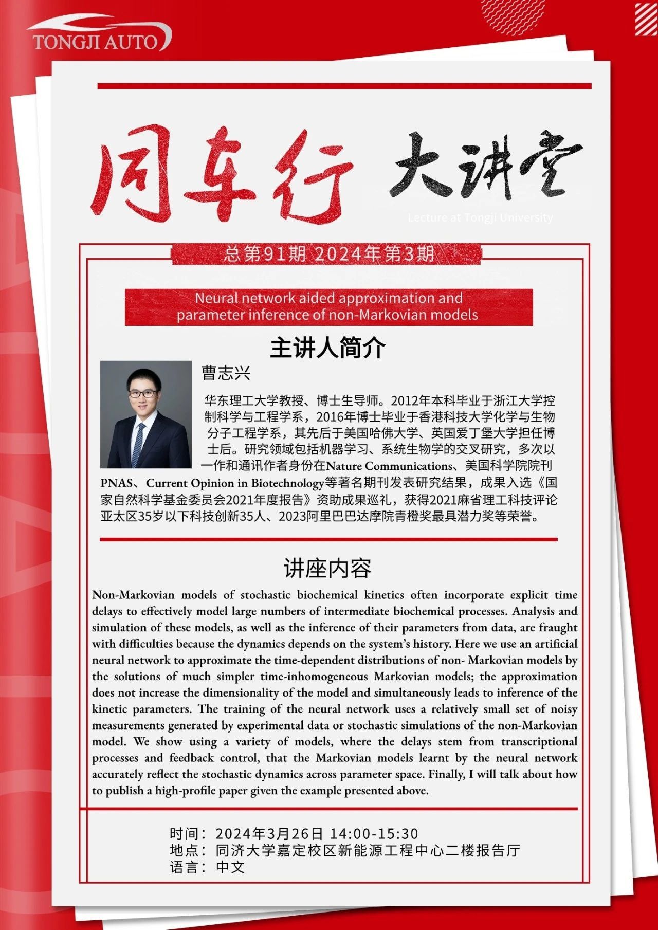 “同车行”大讲堂第九十一期|神经网络辅助的非马尔科夫过程模型的近似与参数推断