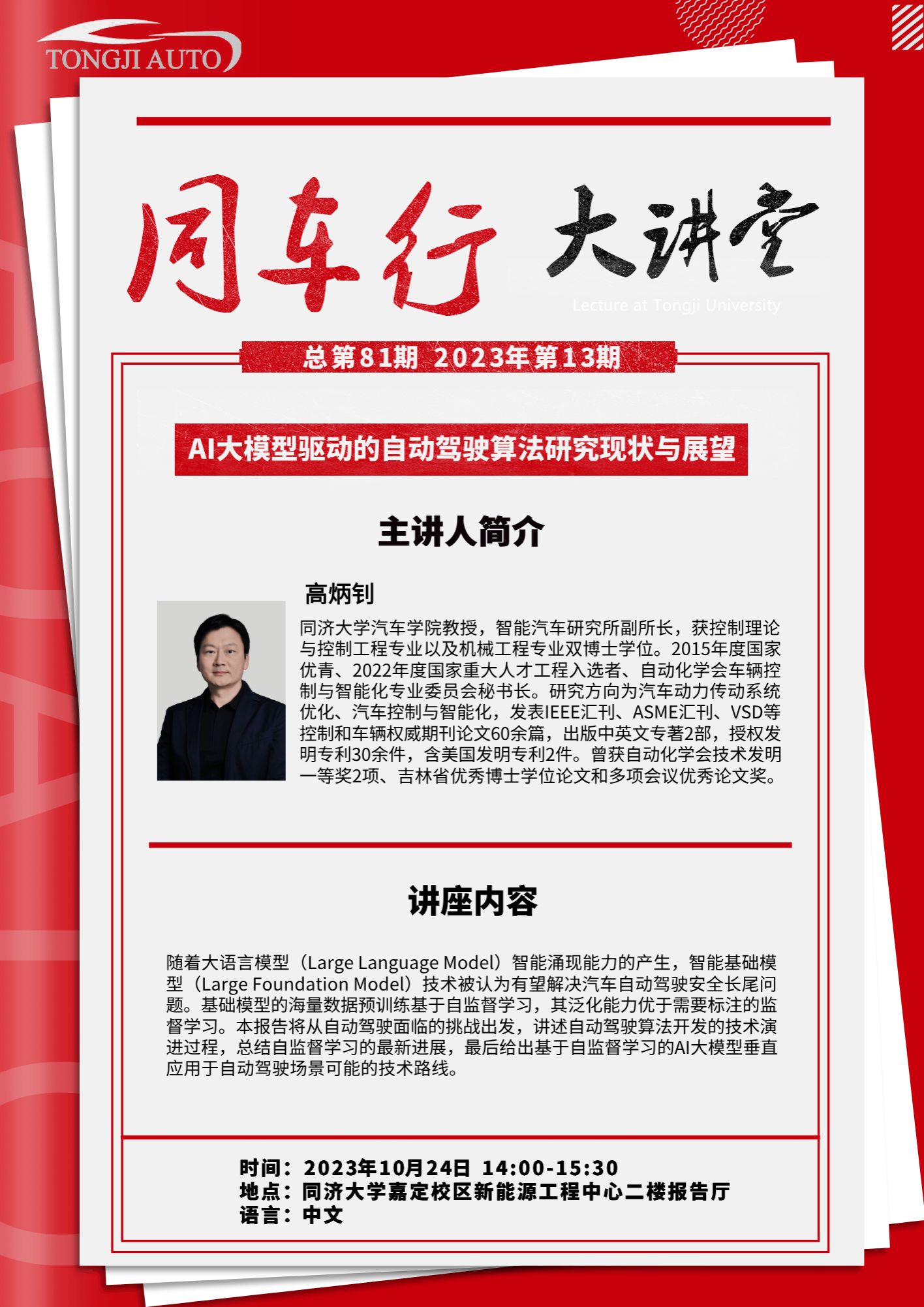 “同车行”大讲堂第八十一期 | AI大模型驱动的自动驾驶算法研究现状与展望