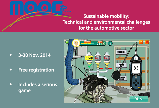 IFP School - ENSPM, the graduate school for energy and transportation professions, has joined the MOOC movement by launching its first free on-line course on sustainable mobility. This MOOC (Massive Open Online Course) will be delivered in English and will be spread over four weeks, from 3 to 30 November 2014.